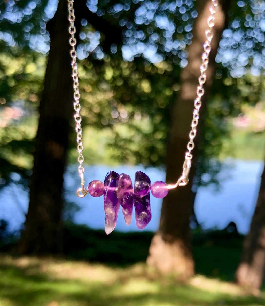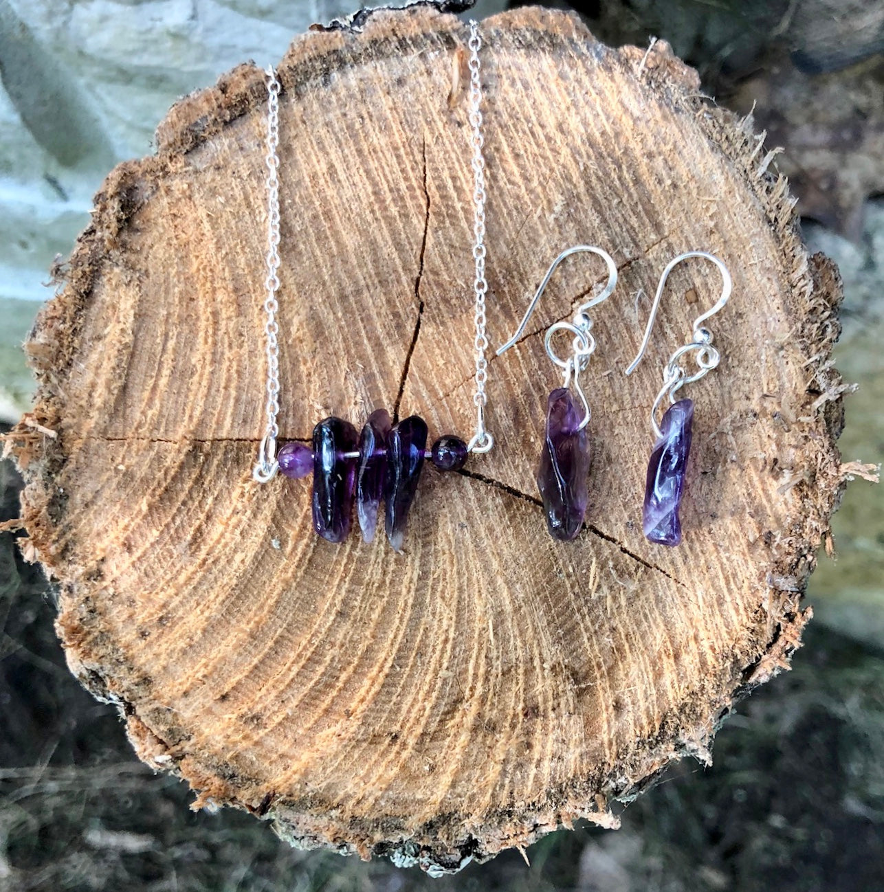Amethyst Cairn Necklace and Earrings has calmed me!