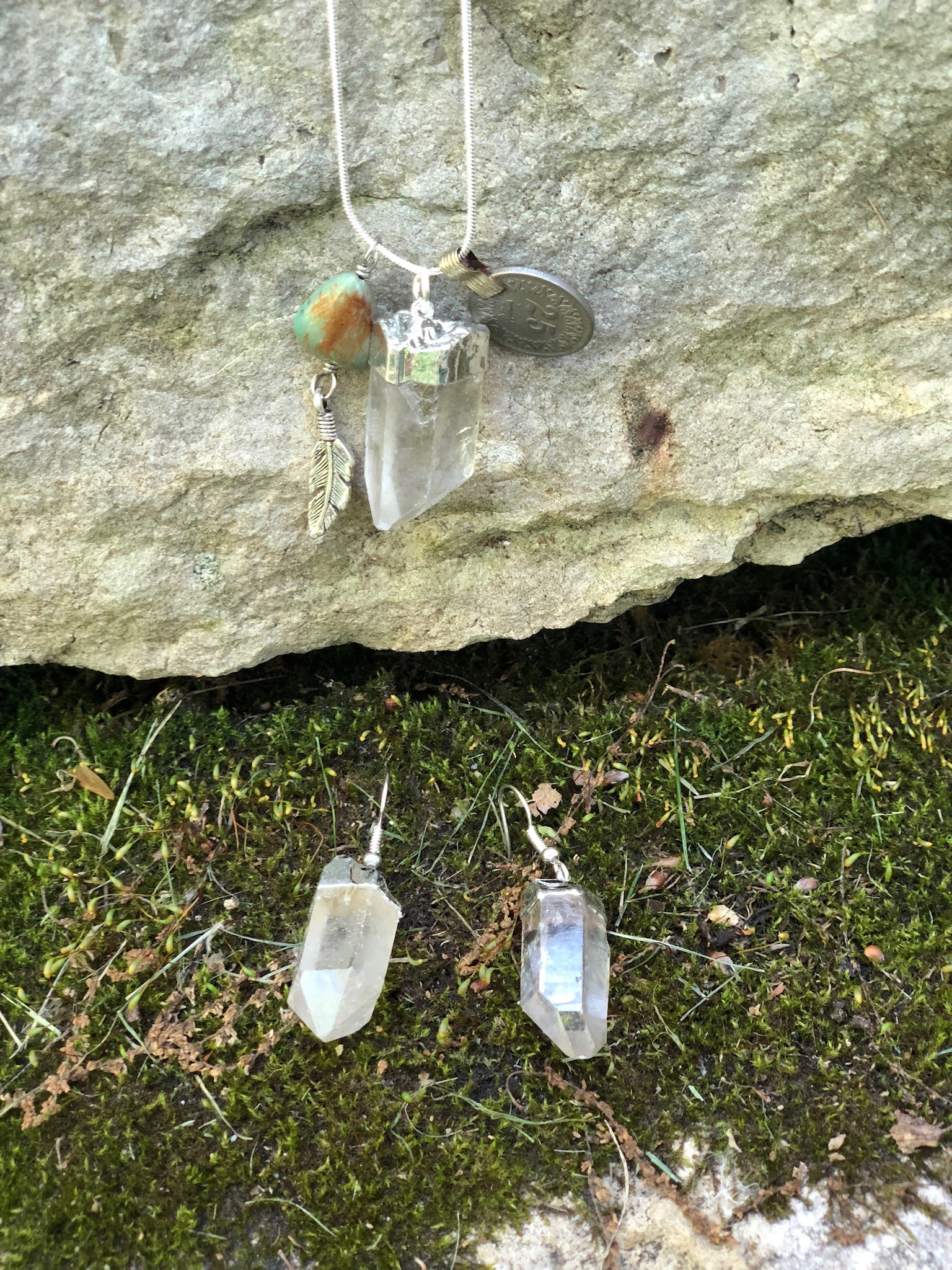 • Electroplated clear quartz crystal.  Approx. 2 inch drop