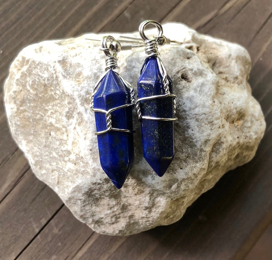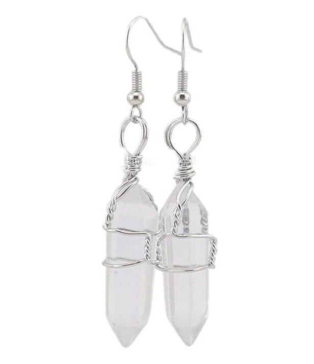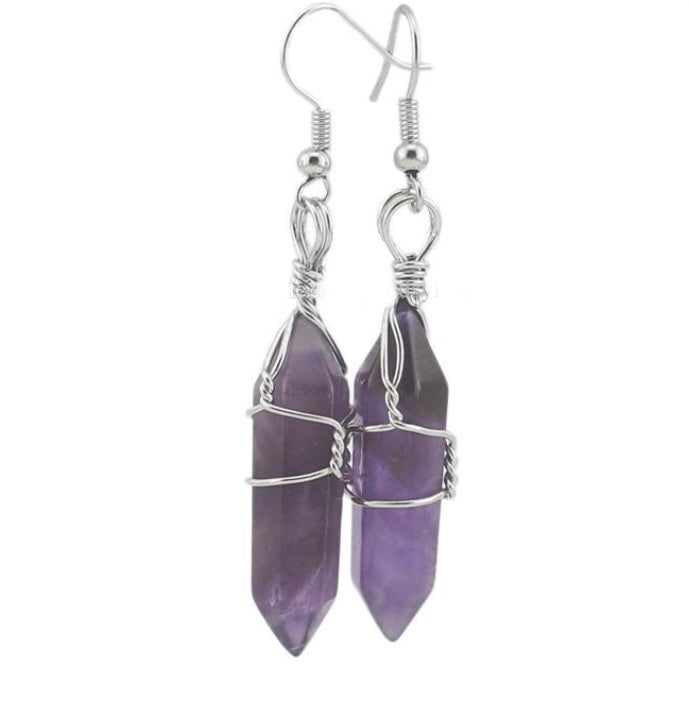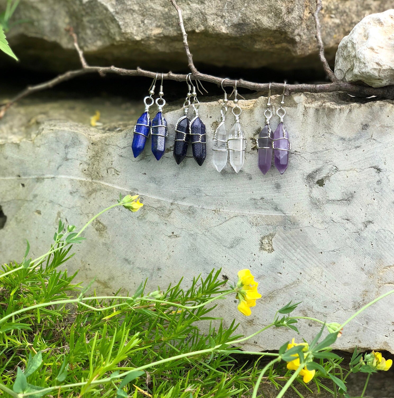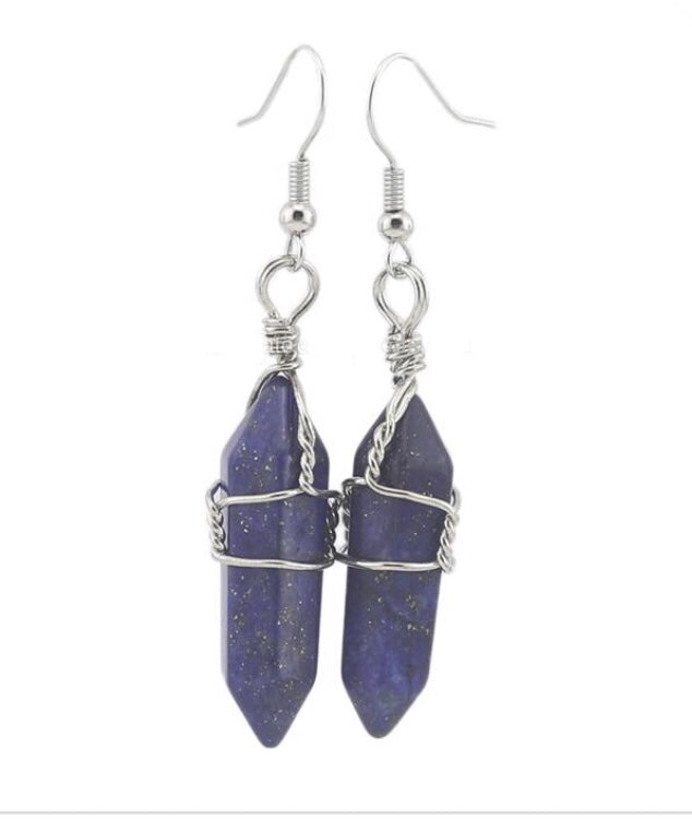 Healing Crystal Point Earrings. Select from Clear Quartz, Amethyst, Black Agate, and Lapis Lazuli.