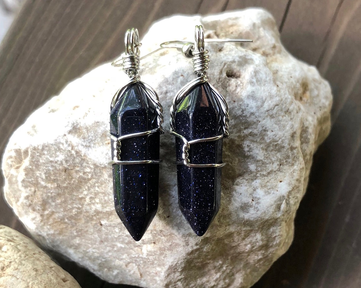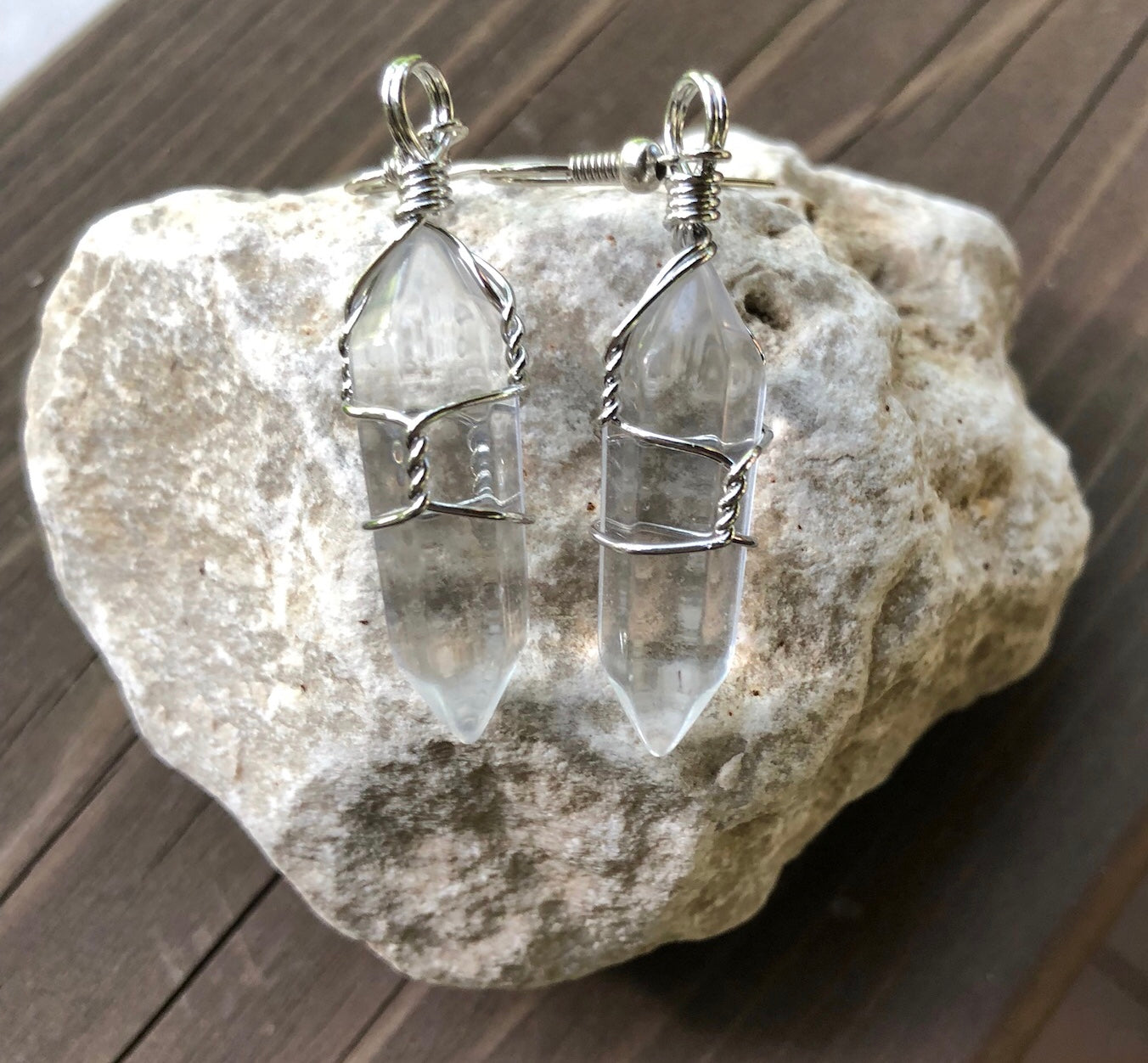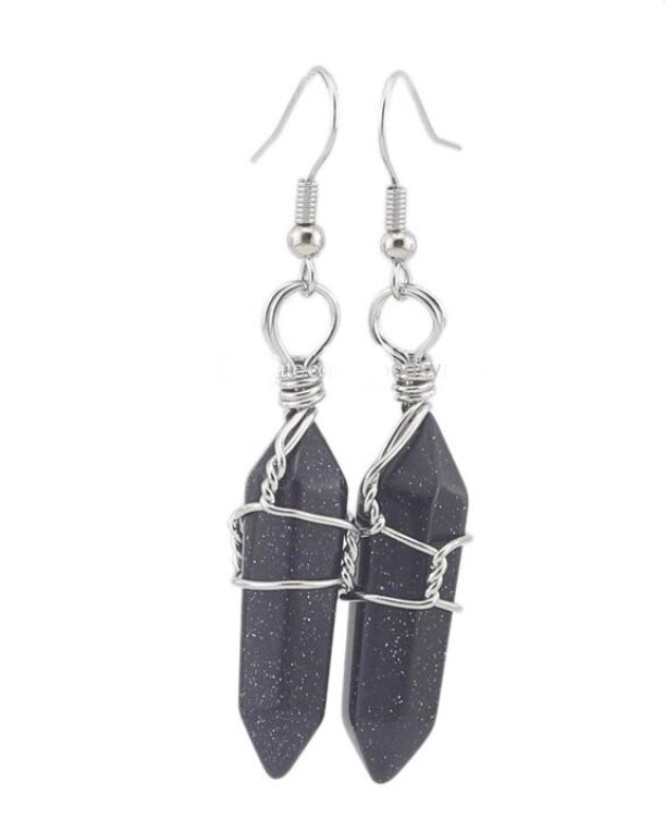 Healing Crystal Point Earrings. Select from Clear Quartz, Amethyst, Black Agate, and Lapis Lazuli.