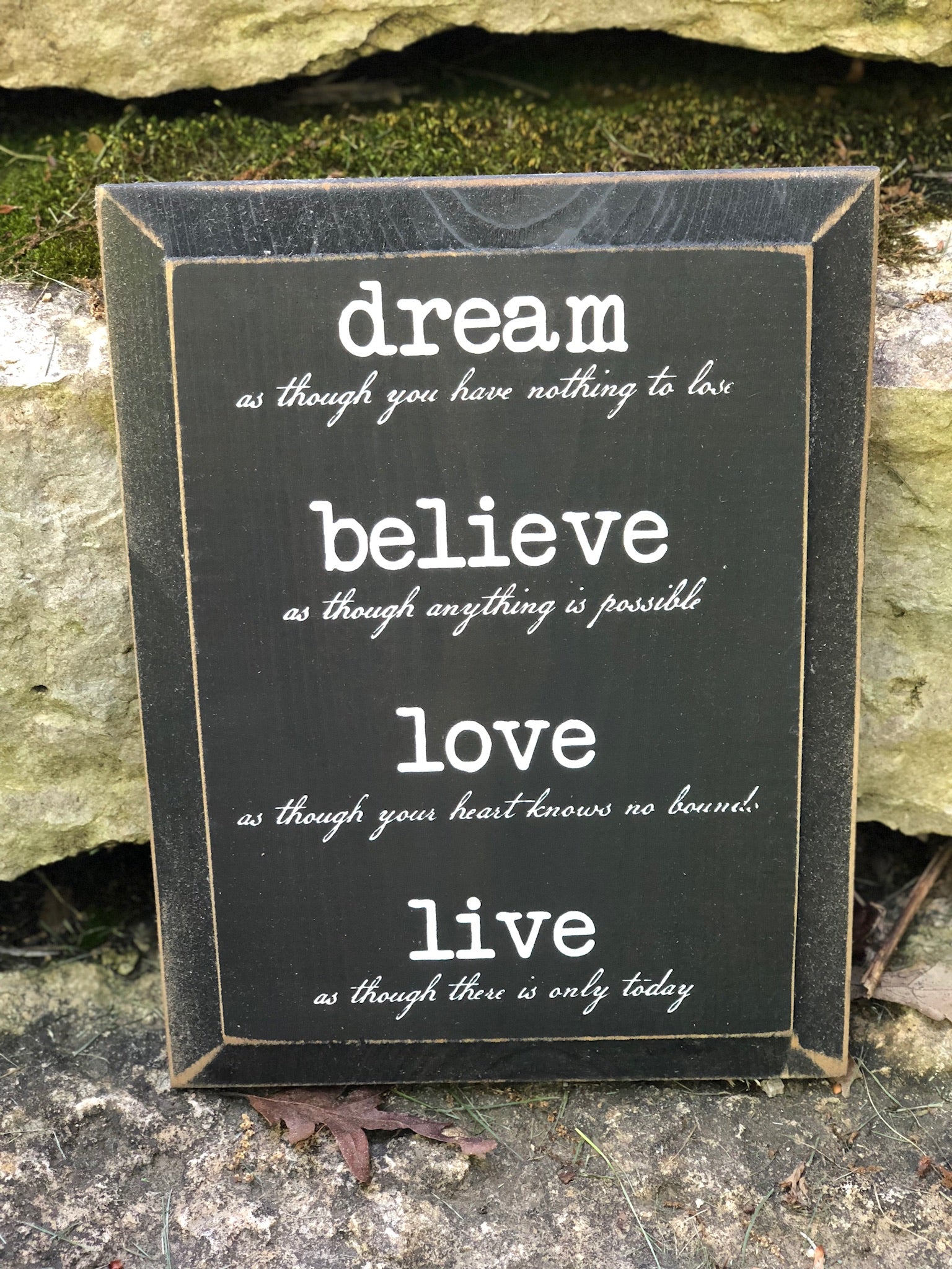 Dream as though you have nothing to lose, Believe as though anything is possible, Love as though your hear knows no bounds, Live as though there is only today.
