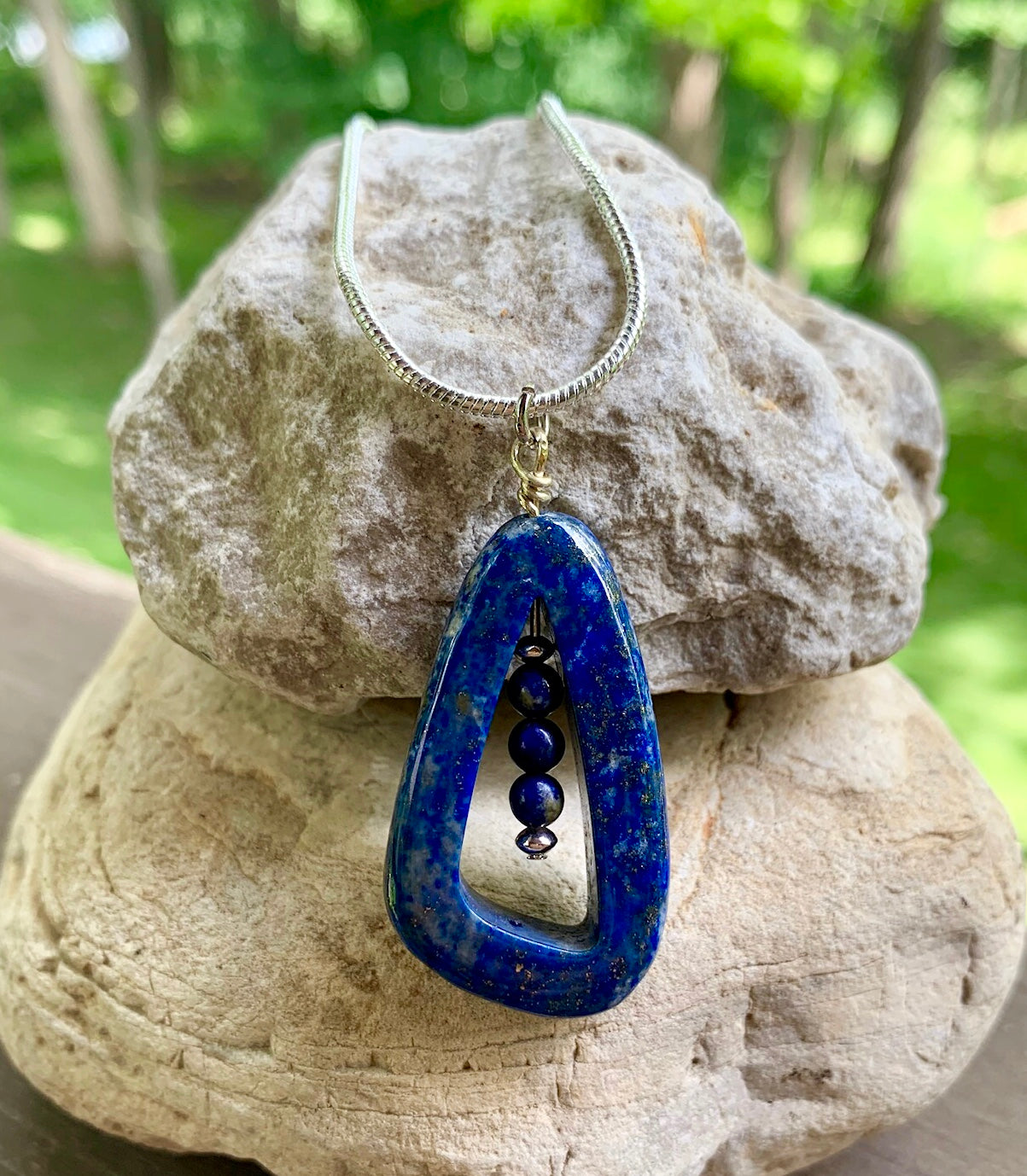 Release emotional negativity and anxiety with our exclusively designed and handcrafted beautiful Lapis Lazuli Natural Gemstone Pendant. Sterling Silver 18" snake chain.