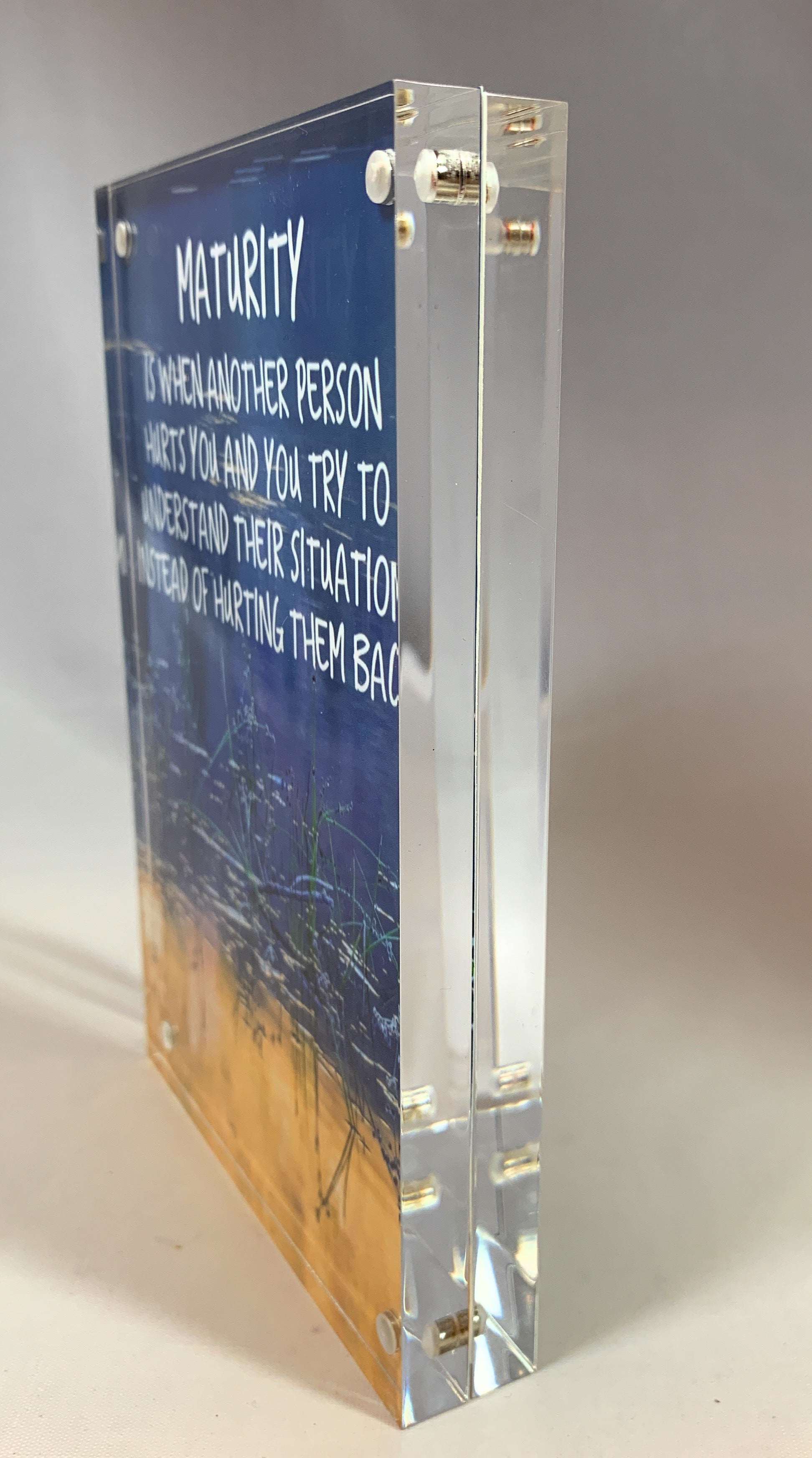 Display this beautiful inspirational message to help you live positively and achieve your desired outcome. Our exclusive inspirational art is perfect for your home, office or gifts. Choose Single Sided or Double Sided and Select Another Photo From the Collection.