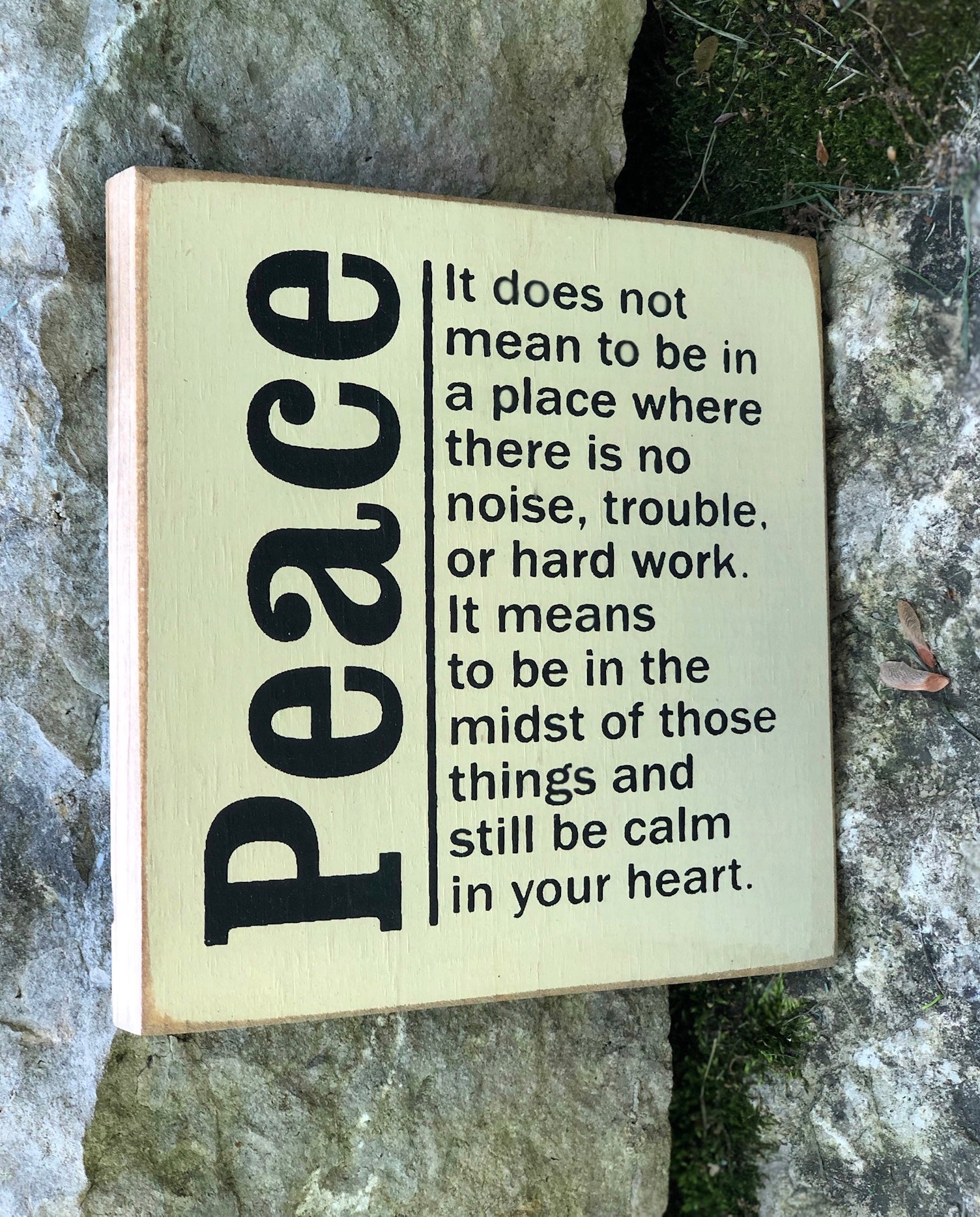 Peace ~ It does not mean to be in a place where there is no noise, trouble, or hard work. It means to be in the midst of those things and still be calm in your heart.