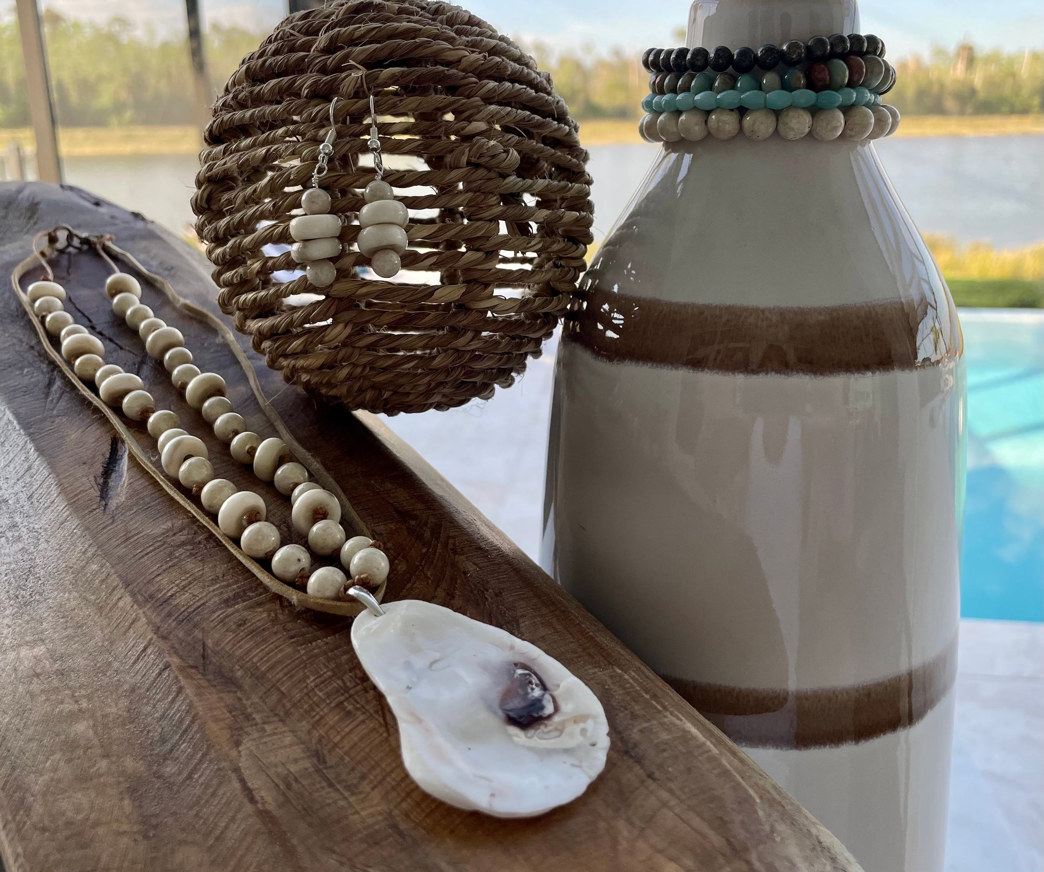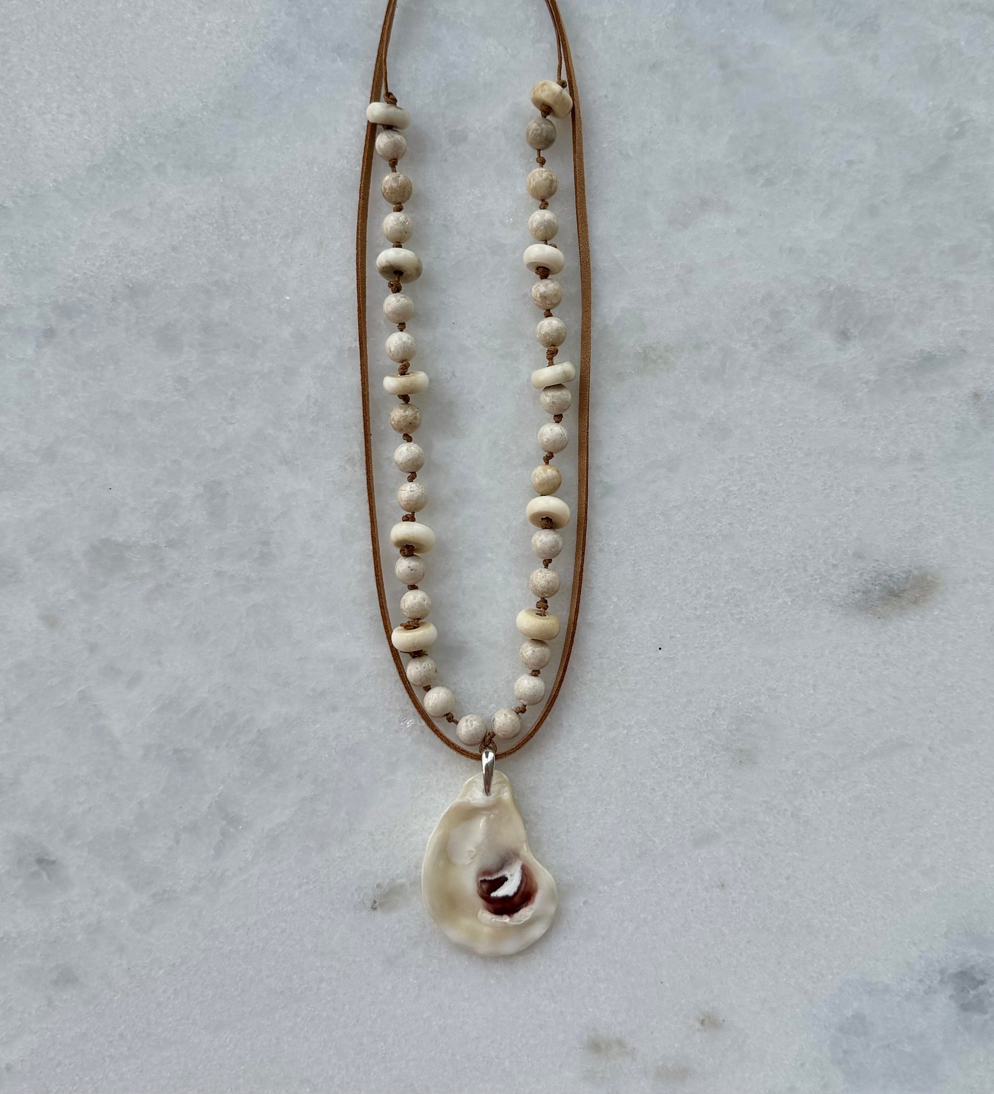 Embrace Calm, Balance and Protection while looking coastal chic! Our beautiful Natural Oyster Shell and Fossil Jasper gemstones are hand knotted and accented alongside soft suede. This gorgeous necklace is exclusively designed and handcrafted by Positively Me! We even hand picked these beautiful shells from Marco island beaches!