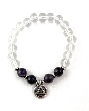 Find strength, courage and inner peace with our Sobriety Healing Bracelet! We designed our sobriety bracelet with the AA sobriety symbol charm along with natural amethyst and clear quartz healing gemstones.