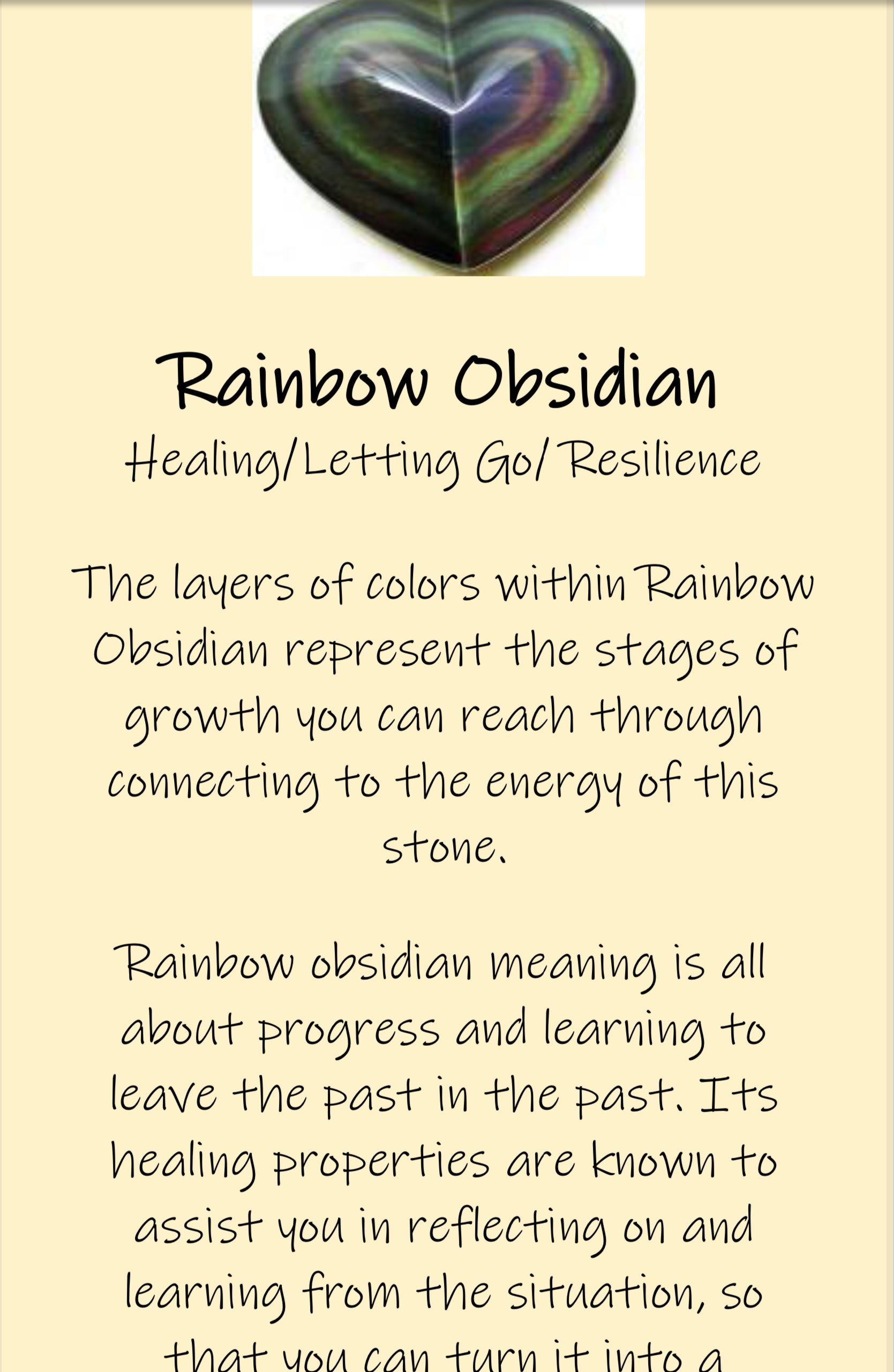 The bands of multicolored iridescence that give this particular Obsidian variety its depth, are caused by the molten lava cooling at different times. These bands become particularly apparent when polished, like these tumbled stones. While rainbow obsidian is remarkable in appearance, it is also remarkably strong when broken. Ancient civilizations used obsidian to cut through objects. As volcanic glass, obsidian fractures into sharp pieces that were functional for spears or slicing devices. Maybe that is what gives rainbow obsidian meaning the energy of resilience and separation. Even when rainbow obsidian breaks, it discovers a new strength and range of possible uses.