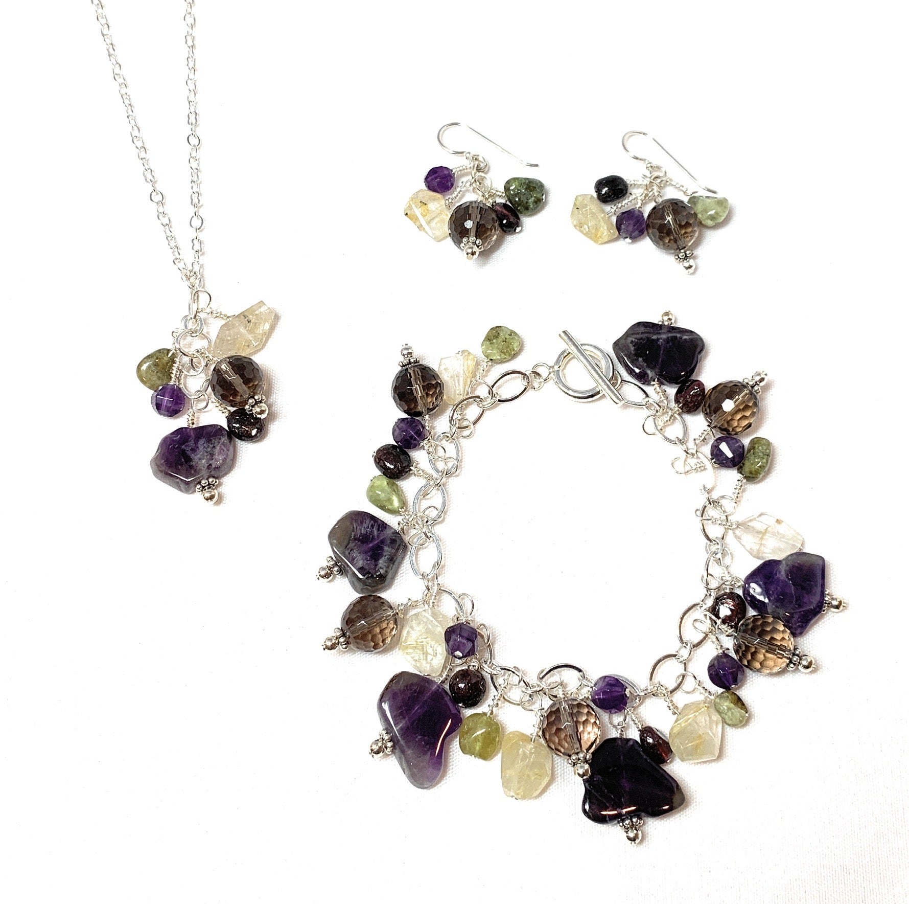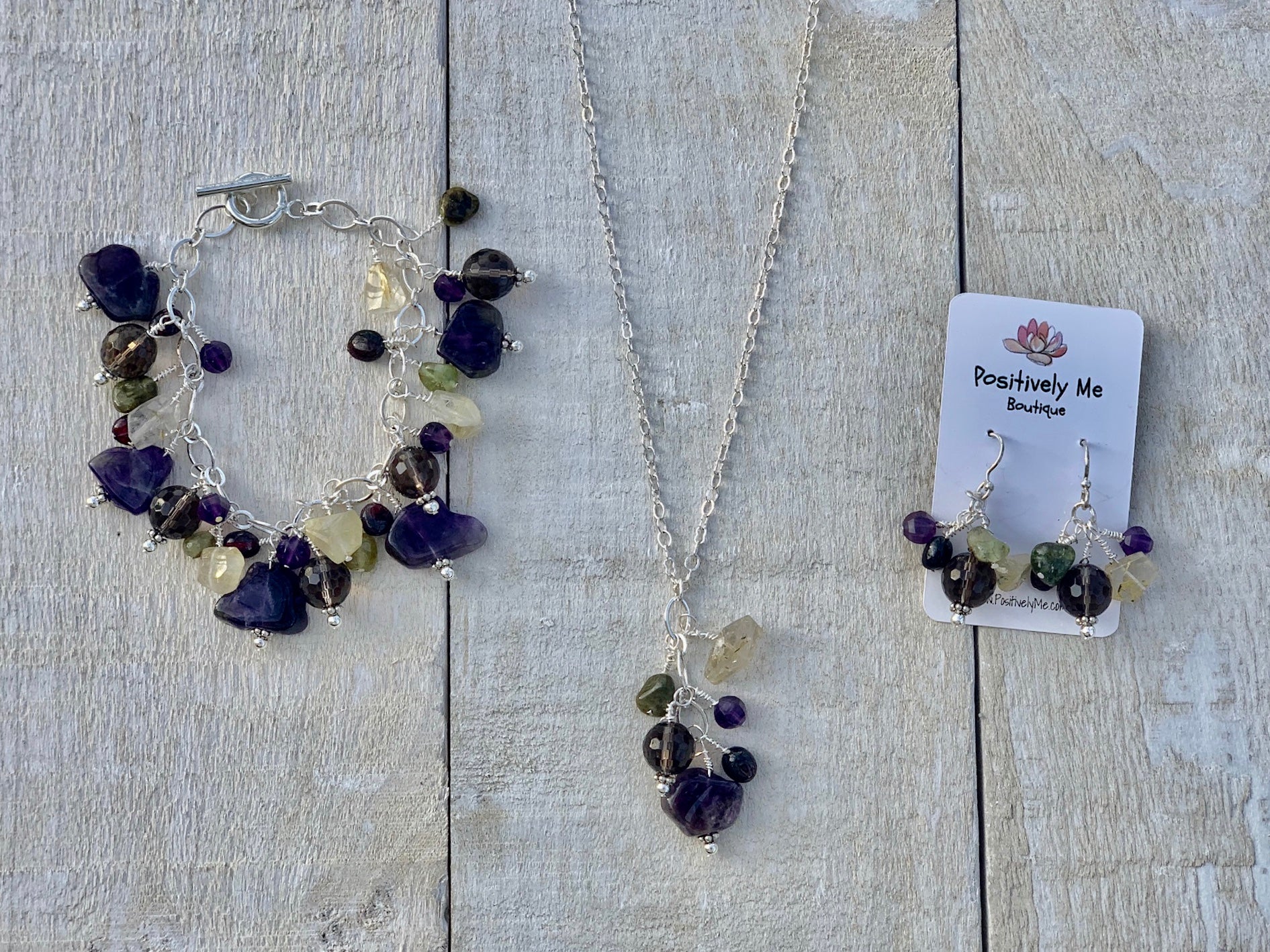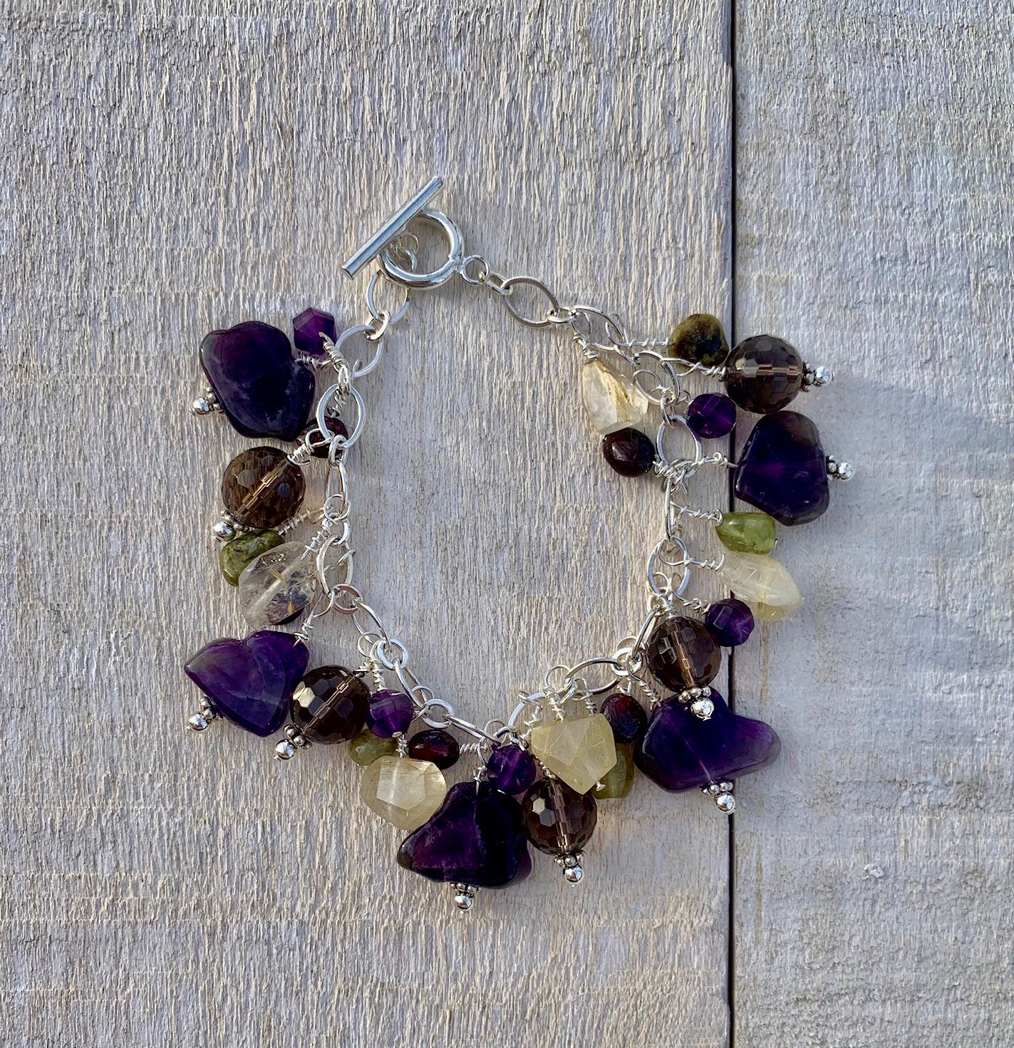 Find inner peace with our gorgeous free form Amethyst, faceted Smoky Quartz , Garnet, Citrine and Jade Bracelet! Exclusively designed and handcrafted by Positively Me Boutique.