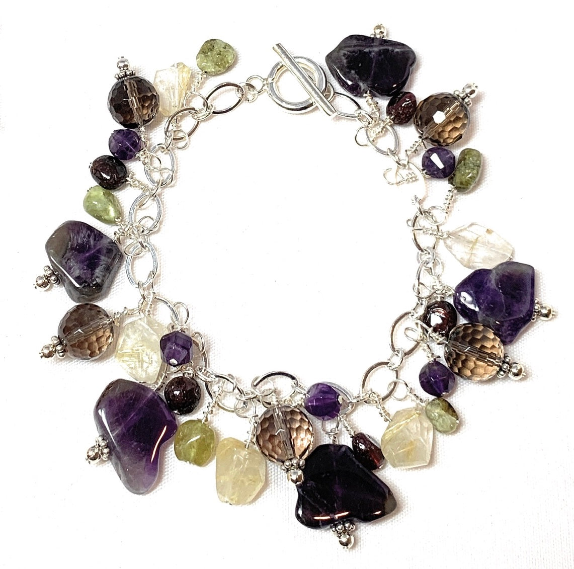 Inner Peace Amethyst, Smoky Quartz, Garnet, Citrine and Jade Bracelet